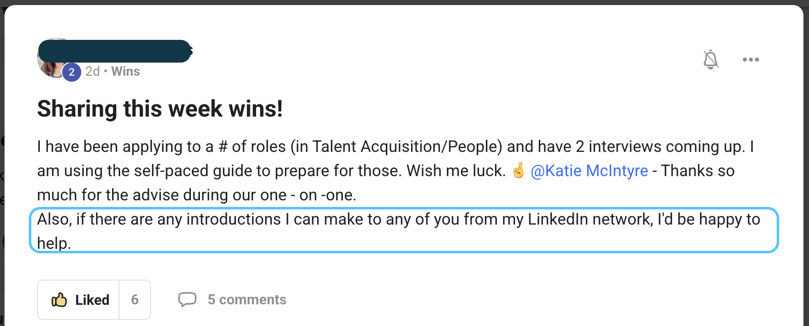 - introductions, support, and accountability