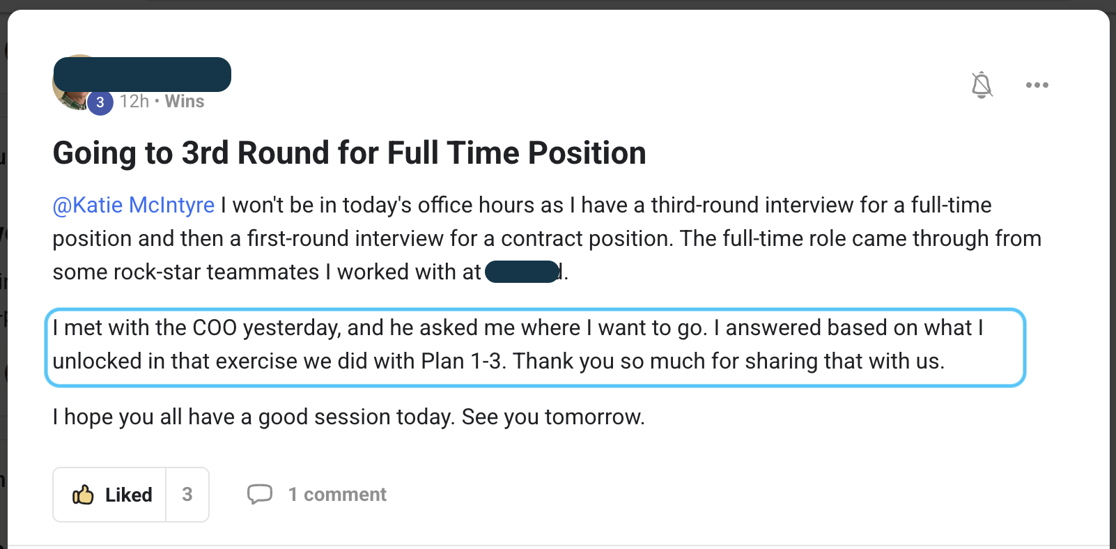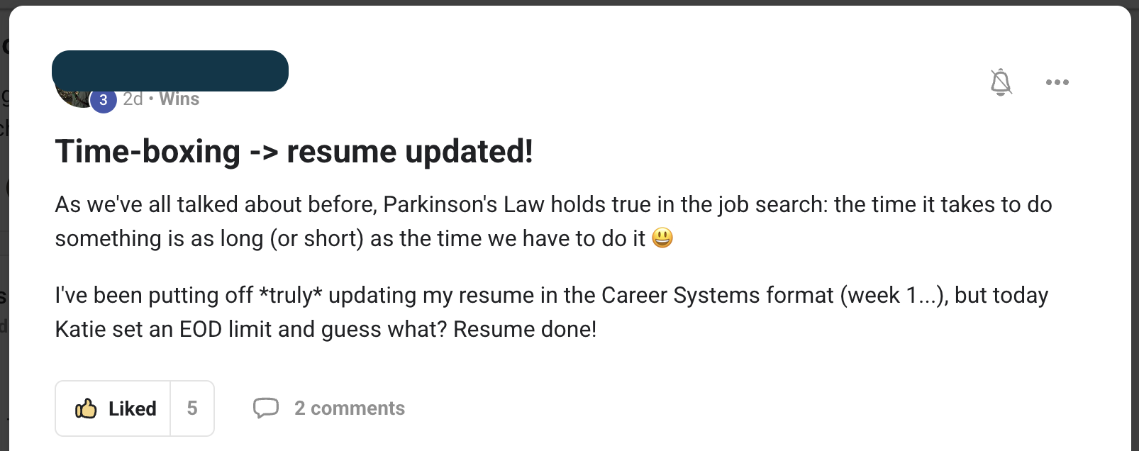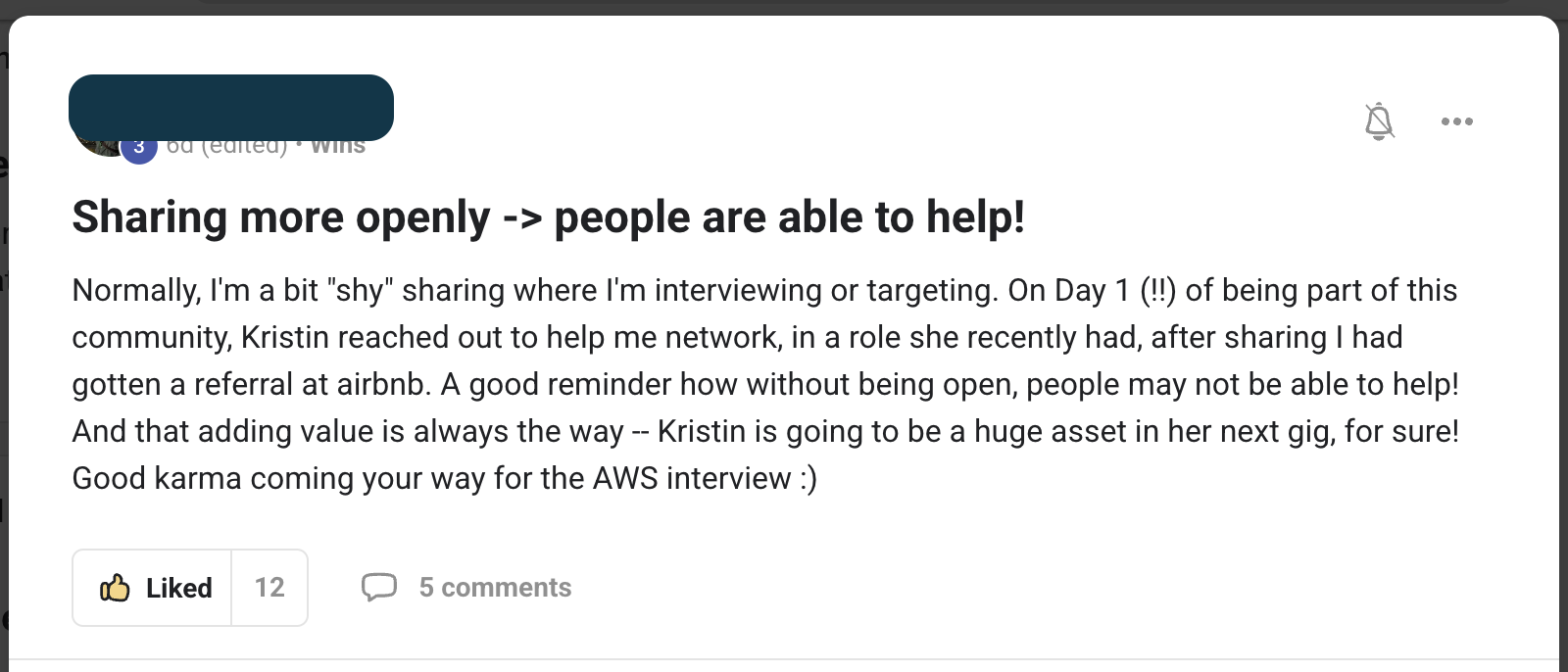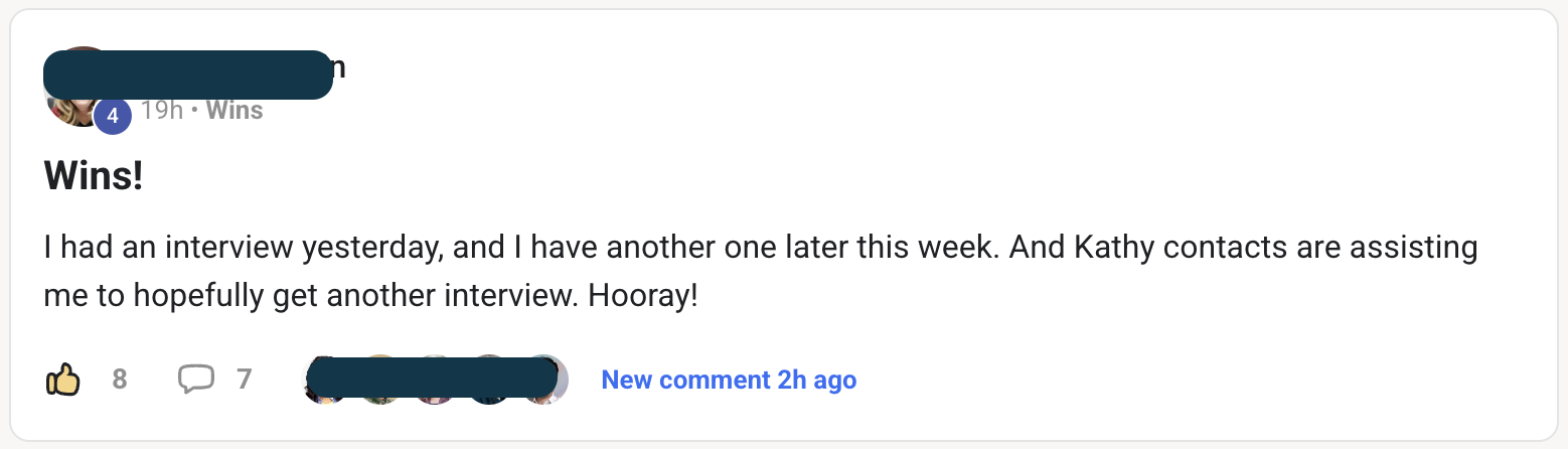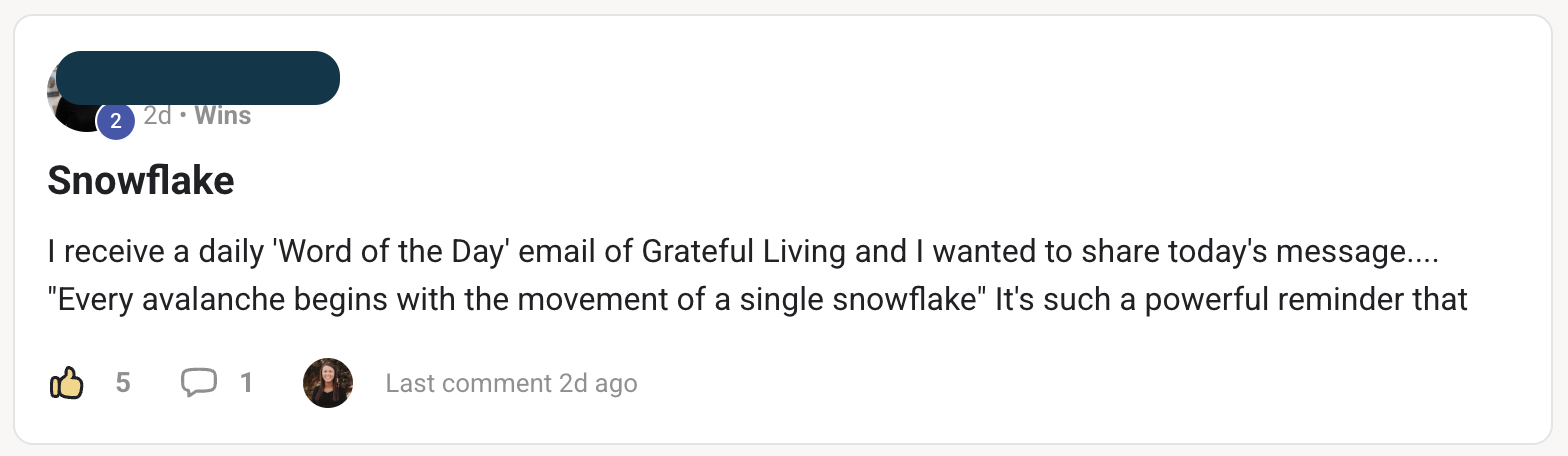 - community of people who celebrate wins instead of complaints